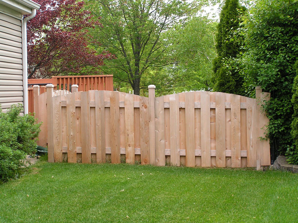 4' shadow box scalloped fence combines the robust style of the shadow box with the grace of a scallop.